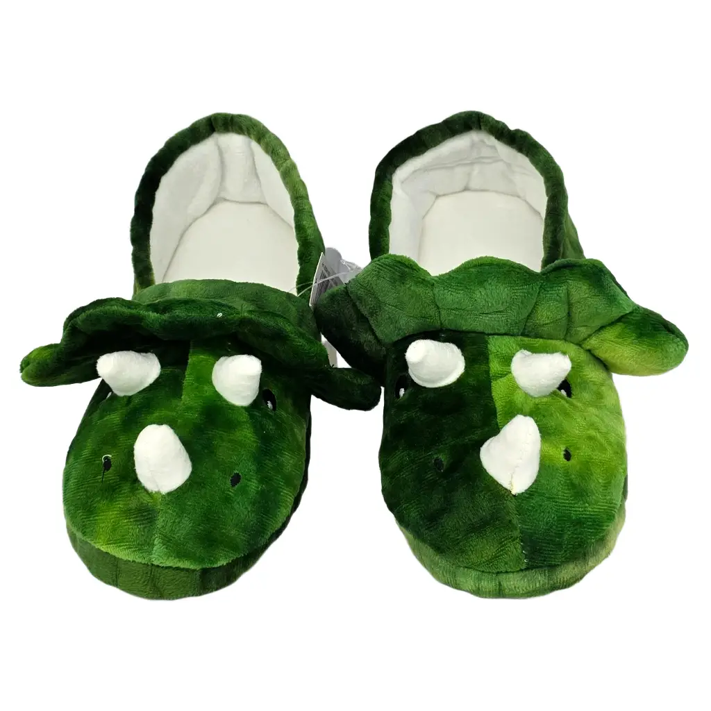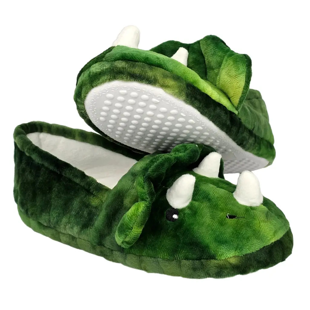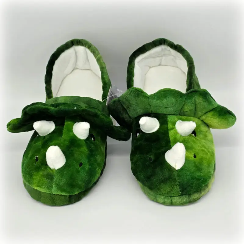 Diese flauschigen Hausschuhe sehen aus wie kleine Triceratopse – mit drei weichen Hörnern, einem gezackten Nackenschild und einem niedlichen Dino-Gesicht. Ob beim Aufstehen, Spielen oder Herumtapsen im Wohnzimmer: Mit diesen Dino-Hausschuhen wird jeder Schritt zu einem Abenteuer.