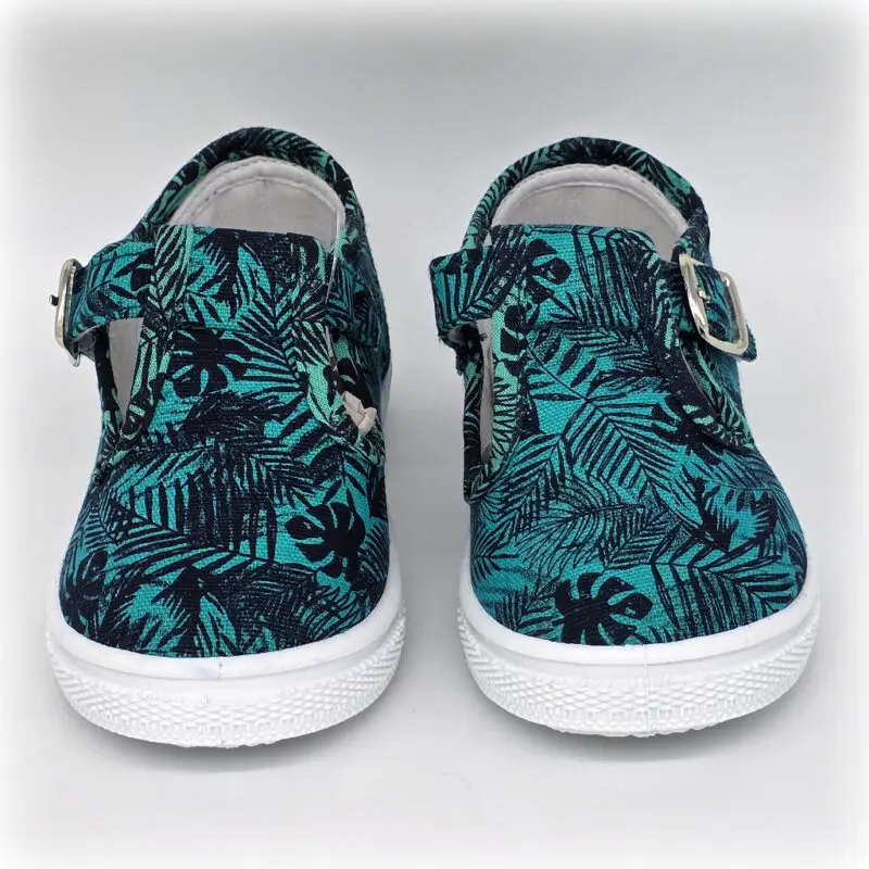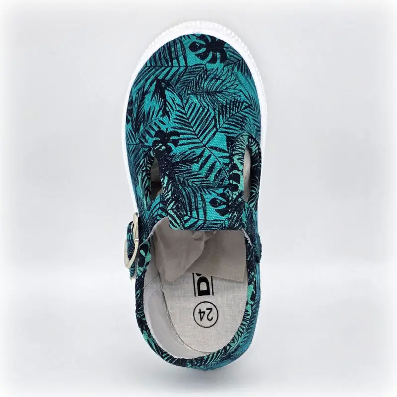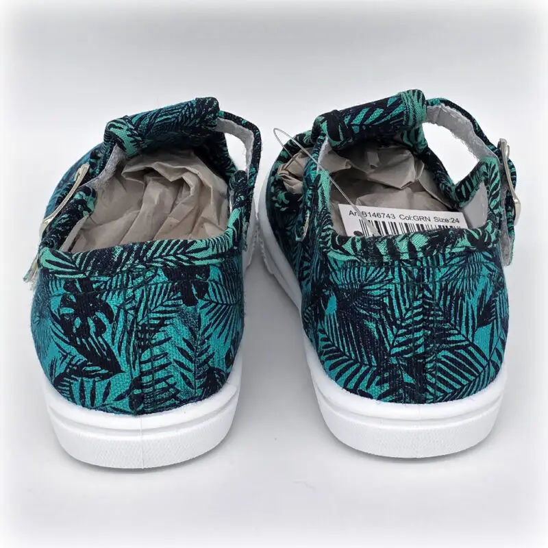 Die Kindersandale mit Tropenmuster ist aus atmungsaktiver Baumwolle gefertigt und daher besonders angenehm zu tragen – auch an warmen Sommertagen. Dank der robusten, rutschfesten Gummisohle bleibt jeder Schritt sicher – selbst auf glatten Böden oder feuchten Wiesen. Die verstellbare Schnalle sorgt dafür, dass der Schuh perfekt sitzt, ohne zu drücken oder zu verrutschen.