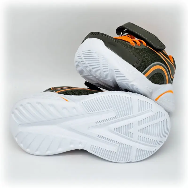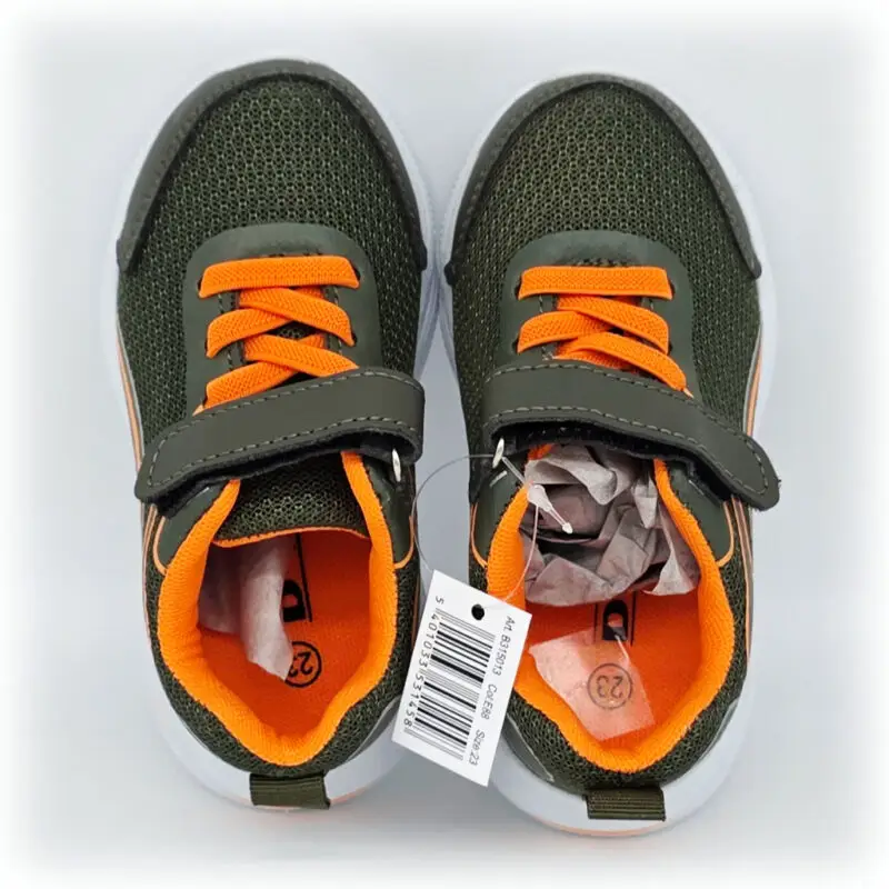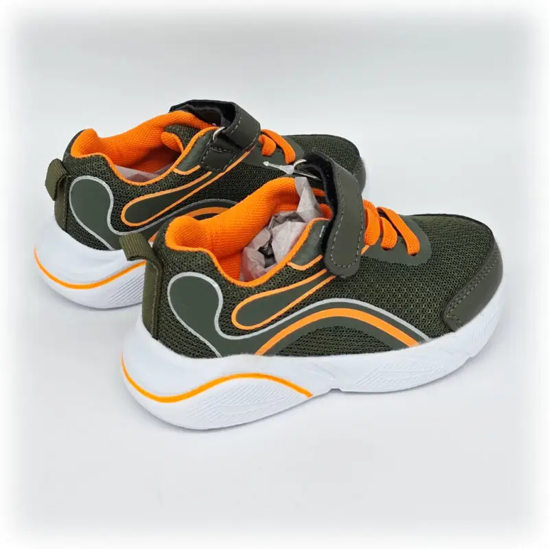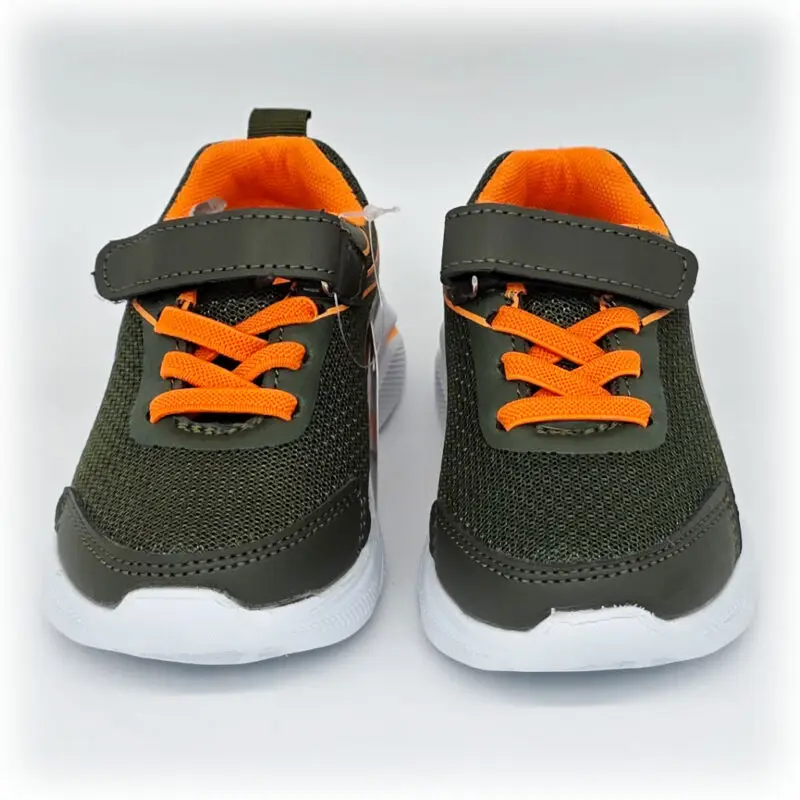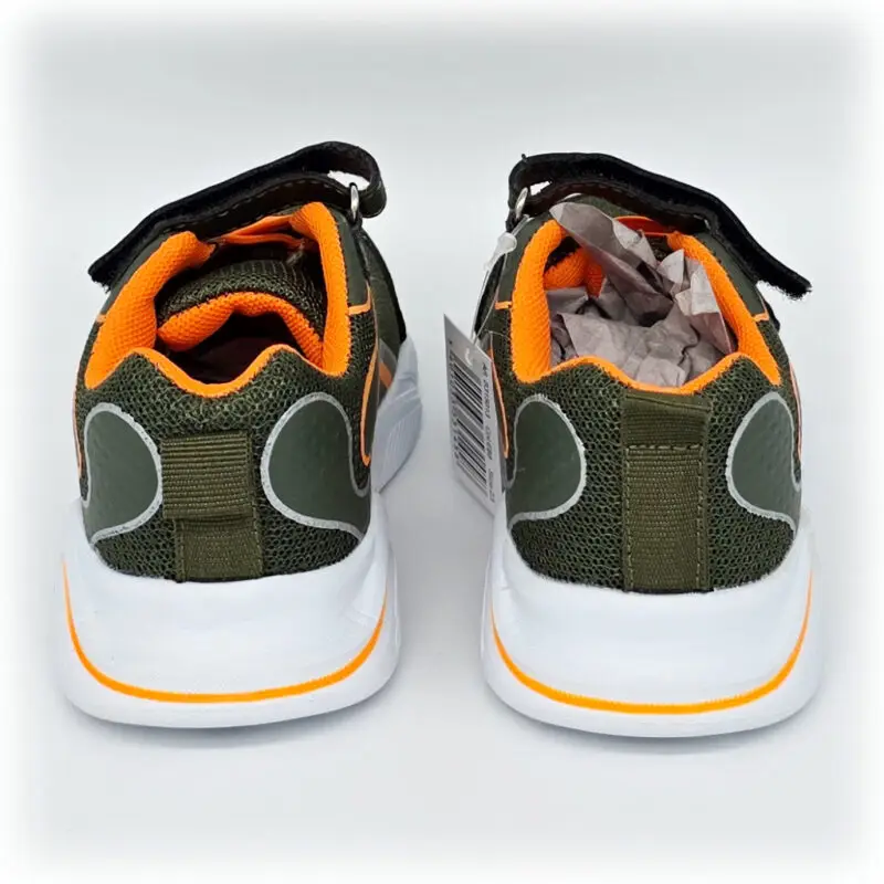 Mit dem grünen Kindersneaker mit Klettverschluss ist dein kleiner Wirbelwind bestens gerüstet für jeden Einsatz – ob auf dem Pausenhof, im Wald oder beim Wettrennen mit dem Hund 🐕💨. Der kräftige Grünton trifft auf leuchtendes Orange, reflektierende Elemente und eine federleichte, weisse Sohle – ein Look wie gemacht für mutige Mini-Kommandanten.
