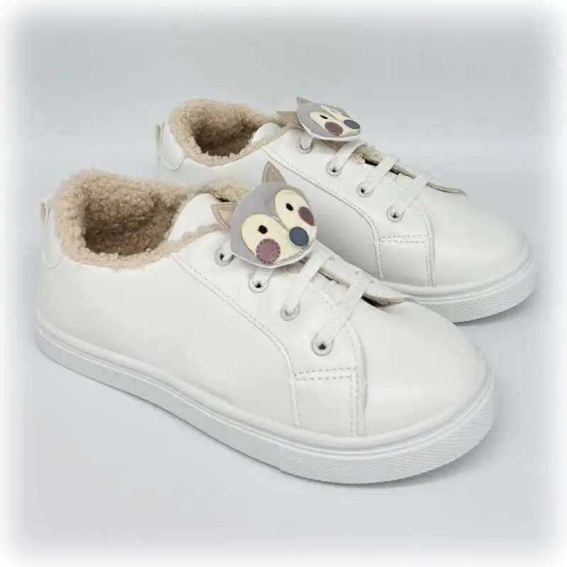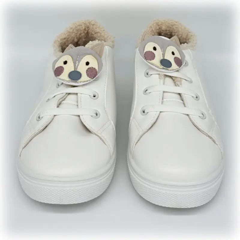 Der weisse Wolfi-Schuh ist mehr als nur ein Kinderschuh – er ist ein tierischer Freund, der kleine Füsse warmhält und jedes Abenteuer mitmacht. Mit seinem niedlichen Wolfsgesicht auf der Lasche schaut er neugierig in die Welt, immer bereit, gemeinsam loszustapfen.