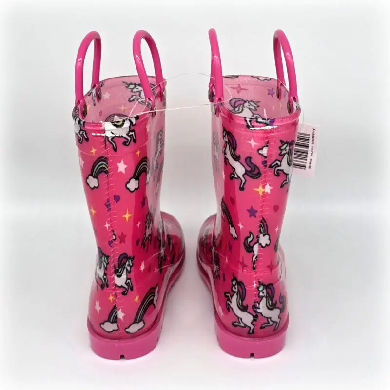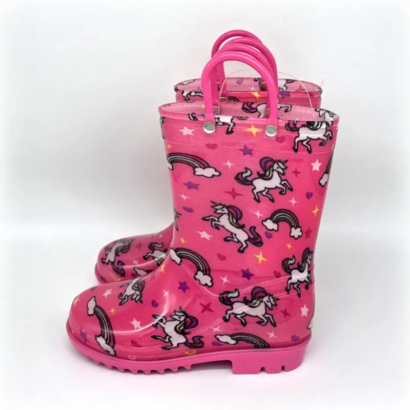 Das farbenfrohe Design mit niedlichen Einhörnern, bunten Regenbögen und leuchtenden Sternen ist ein echter Hingucker. Die Gummistiefel zaubern nicht nur ein Lächeln ins Gesicht, sondern fördern auch die Fantasie: Denn wer möchte nicht mit einem Einhorn durch Regenwolken galoppieren?