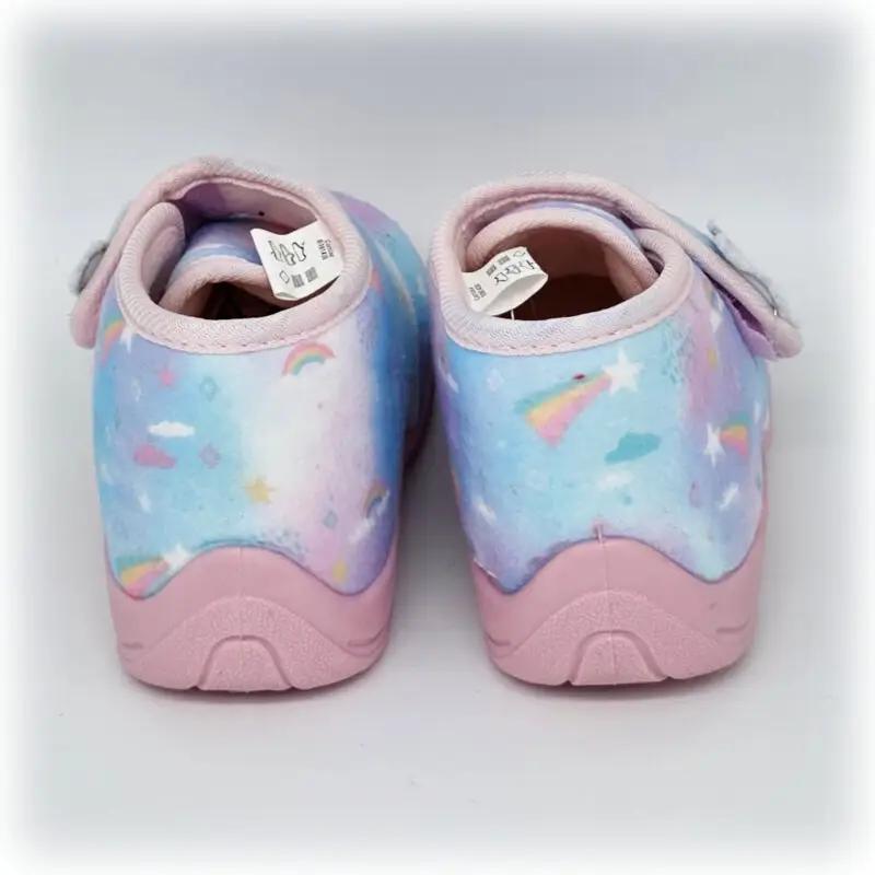 Mit den Regenbogen-Hausschuhen für Kinder beginnt jeder Tag wie ein kleiner Ausflug ins Wolkenland! ☁️ Diese liebevoll gestalteten Hausschuhe sind nicht nur bequem, sondern auch echte Stimmungsmacher. Auf himmelblauem Stoff tanzen bunte Regenbögen, Sterne und Wölkchen fröhlich umeinander – als würden sie deinem Kind eine eigene kleine Traumwelt zu Füssen legen.