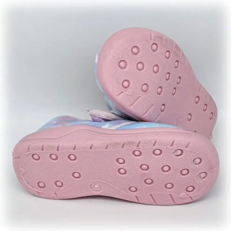 Die rutschfeste, rosafarbene Sohle sorgt dafür, dass selbst wilde Regentänze im Wohnzimmer oder schnelle Wolkenflitzer-Rennen über den Flur sicher bleiben. Dabei sind die Hausschuhe so weich gefüttert, dass kleine Zehen sich fühlen wie in Zuckerwatte eingehüllt.