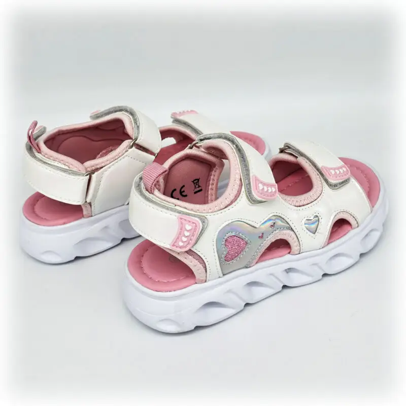 Das silberne Obermaterial glitzert märchenhaft im Sonnenlicht, und liebevoll eingearbeitete Herzchen machen die Sandale zum echten Hingucker. Innen sorgt ein weiches, rosa Futter für maximalen Tragekomfort – sogar barfuss! Die Blinkfunktion in der Sohle aktiviert sich bei jedem Schritt. So entstehen bei jedem Spaziergang kleine Lichtshows – egal ob auf dem Spielplatz oder beim Einkauf mit Mama.