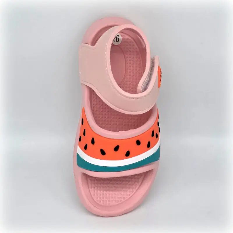 Das fröhliche Design in zartem Rosa kombiniert mit dem leuchtenden Wassermelonenmuster lässt kleine Herzen höher schlagen: Schwarze Kerne, orangefarbenes Fruchtfleisch, grüne Schale – und das Ganze sogar als Detail auf dem Klettverschluss! So wird jeder Schritt zum fruchtigen Erlebnis. 🍉😄