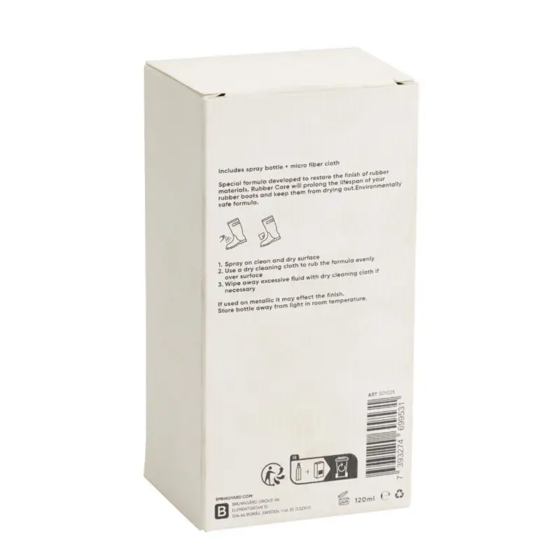 Das SPRINGYARD Rubber Care Set ist wie eine kleine Wellnesskur für deine Gummistiefel. Weiße Schlieren, matte Stellen oder ausgetrocknete Oberflächen? Mit diesem Spezial-Spray gehören sie der Vergangenheit an! Das Set reinigt sanft, bringt den ursprünglichen Glanz zurück und schützt die Oberfläche vor dem Austrocknen. So sehen die Lieblingsstiefel deiner Kinder (und auch deine 😉) länger wie neu aus.