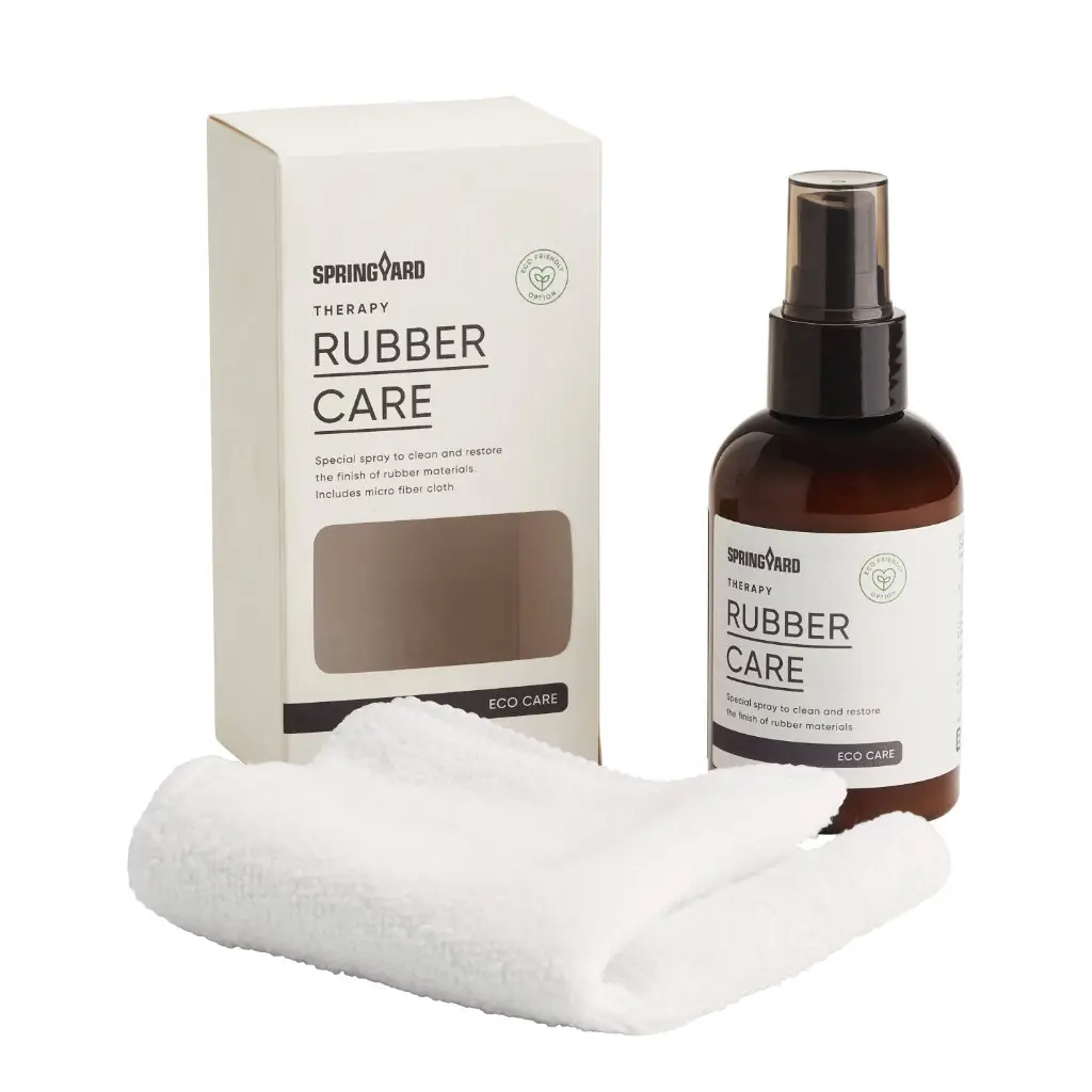 - SPRINGYARD Rubber Care gleichmässig aufsprühen.