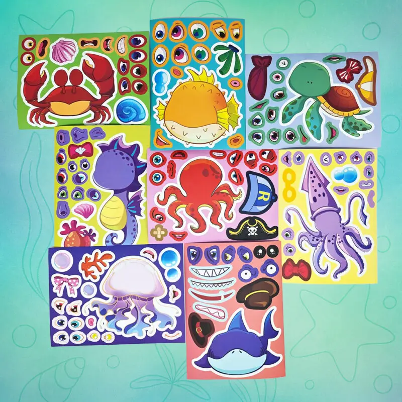 Sticker-Spaß mit Meeresfreunden – das kreative Bastelabenteuer zum Aufkleben und Lachen.